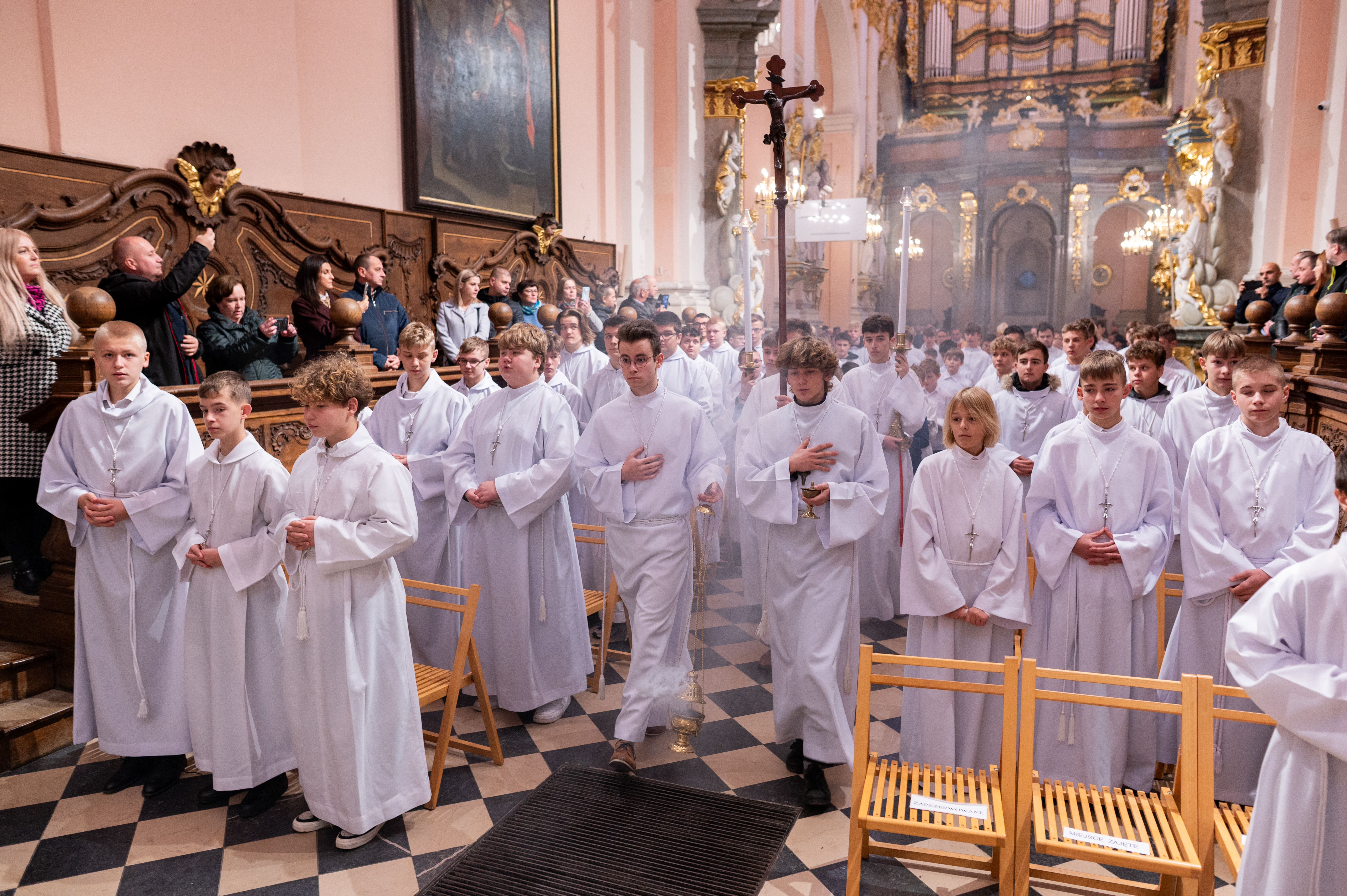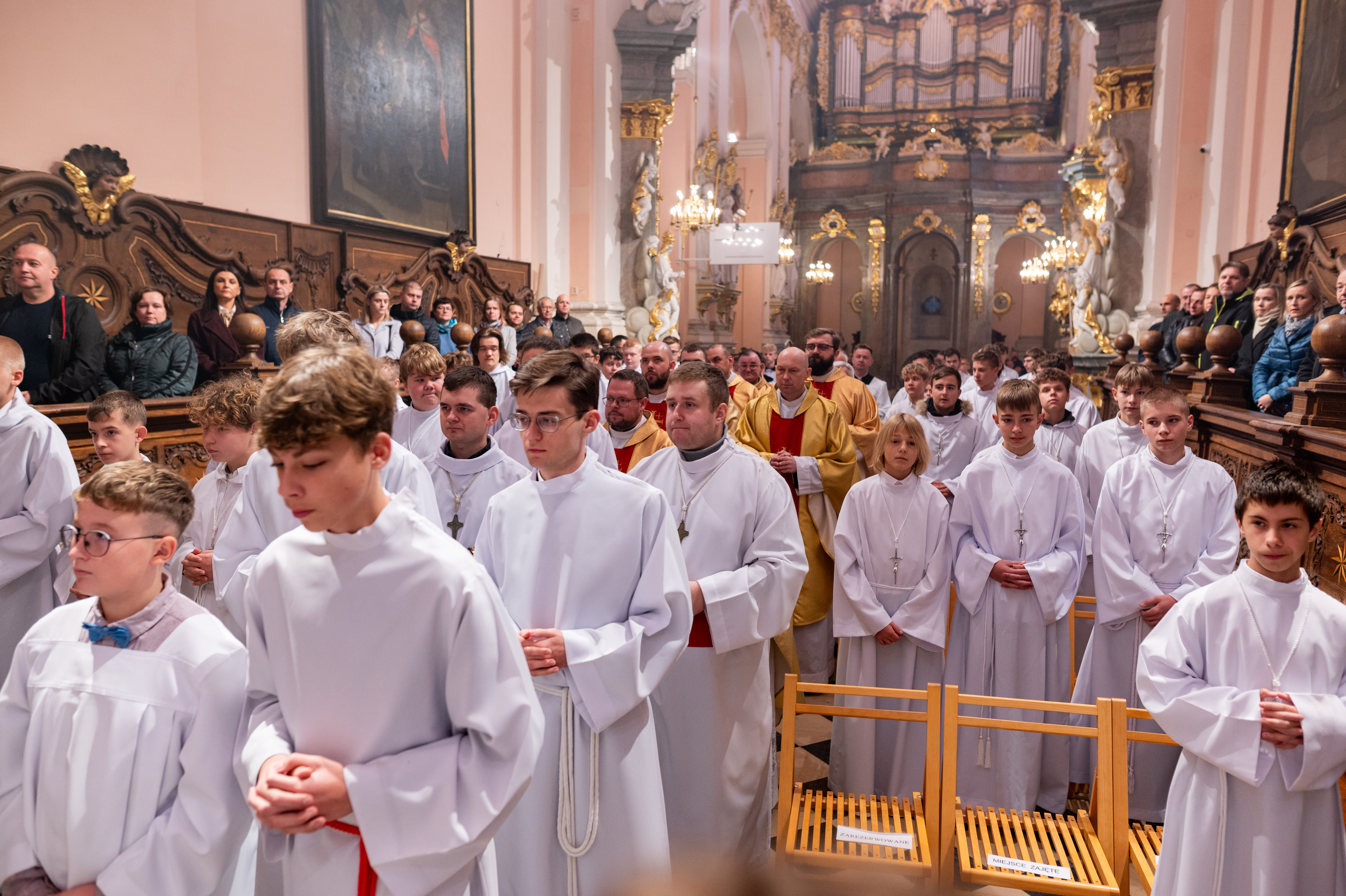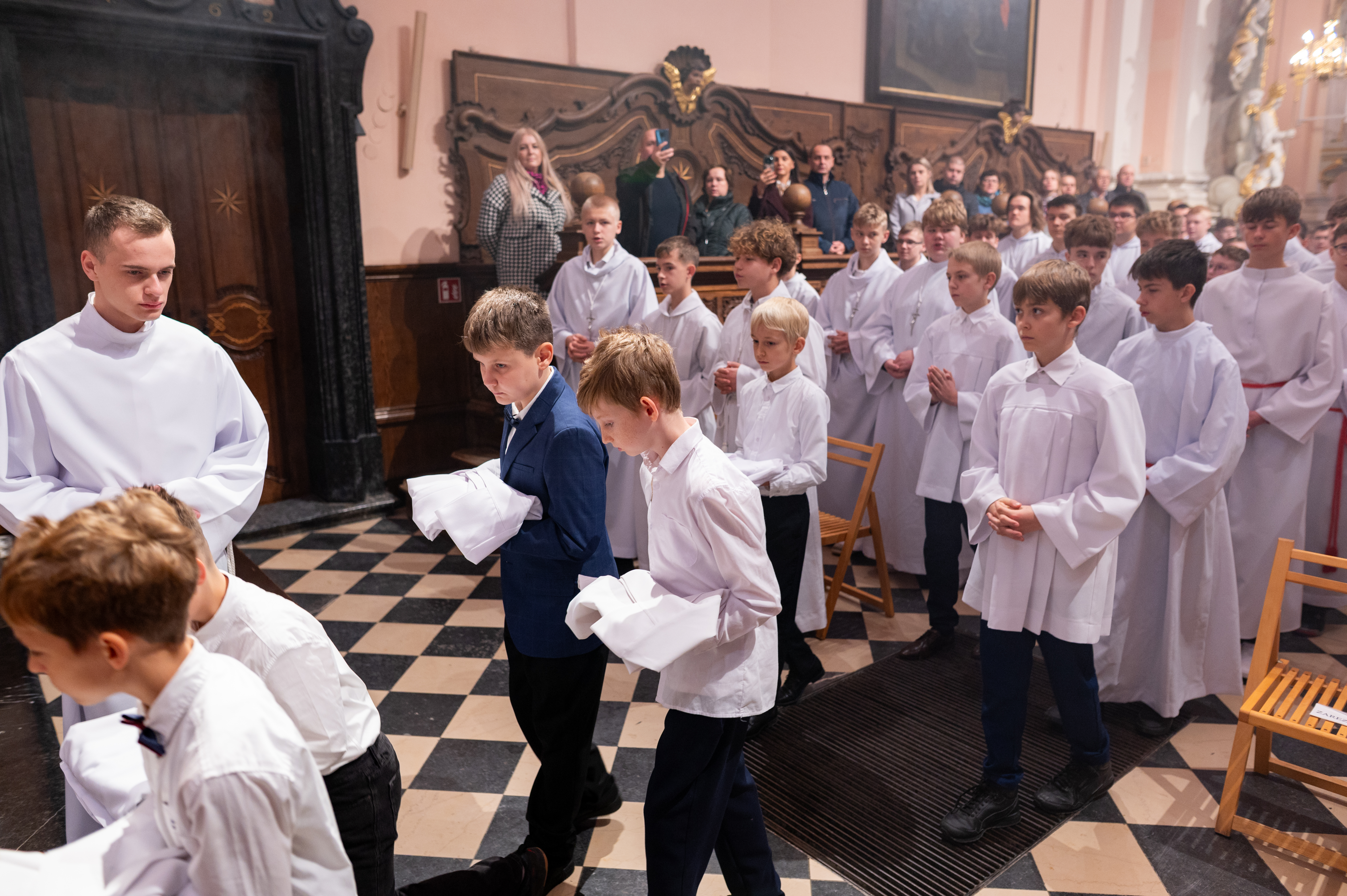 Jesienny kurs do pełnienia funkcji akolity ukończyło prawie 70 ministrantów z 18 parafii diecezji kieleckiej. W sobotę, 9 listopada wszyscy przybyli wraz z rodzinami oraz księżmi opiekunami do Bazyliki Grobu Bożego w Miechowie, gdzie podczas uroczystej Eucharystii błogosławieństwa do pełnienia funkcji akolity udzielił ksiądz biskup Andrzej Kaleta. Błogosławieństwo otrzymało również 3 ceremoniarzy oraz ustanowiono 7 nowych ministrantów, którzy zostali uroczyście przyjęci do służby w miechowskiej parafii.