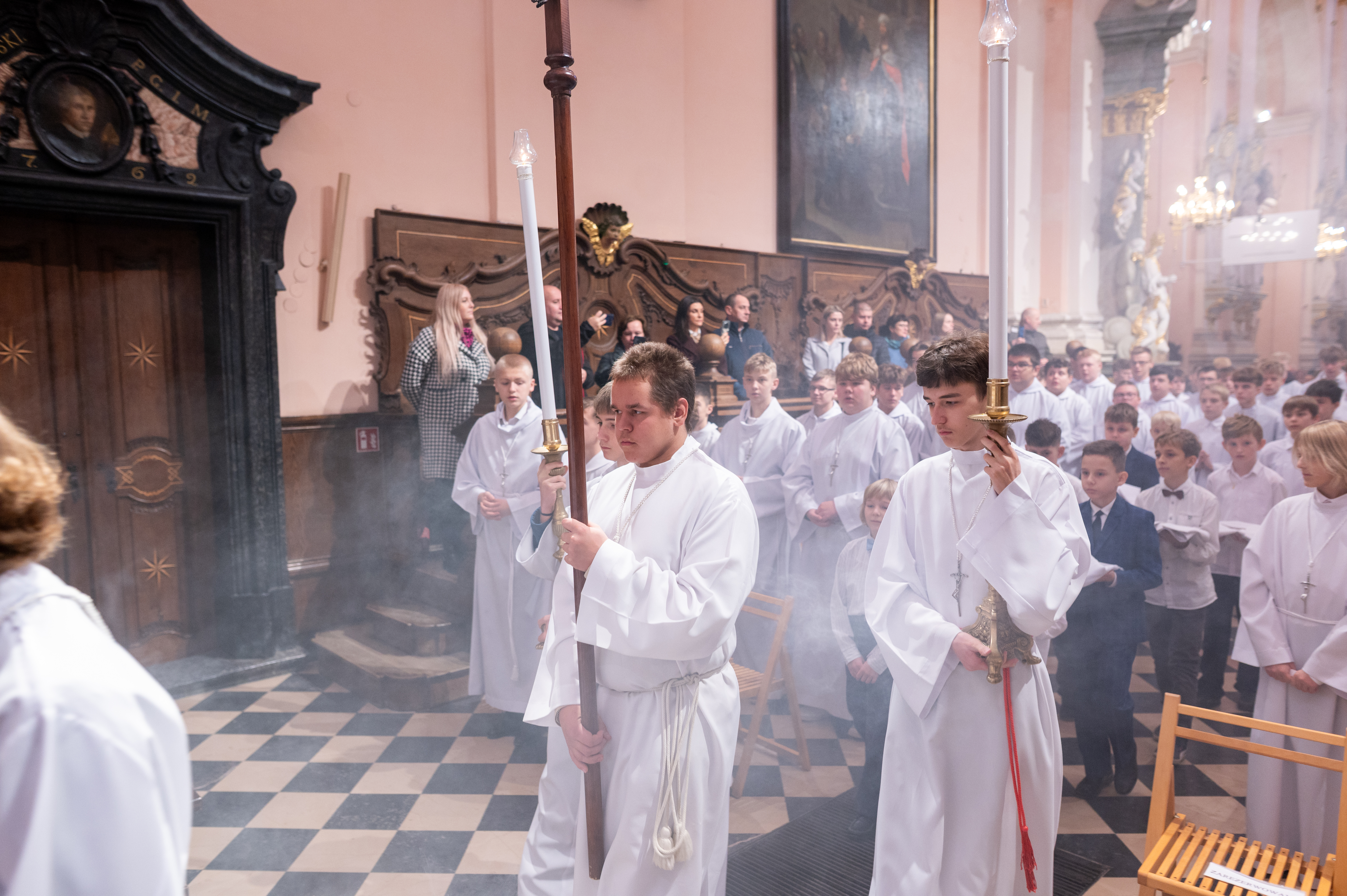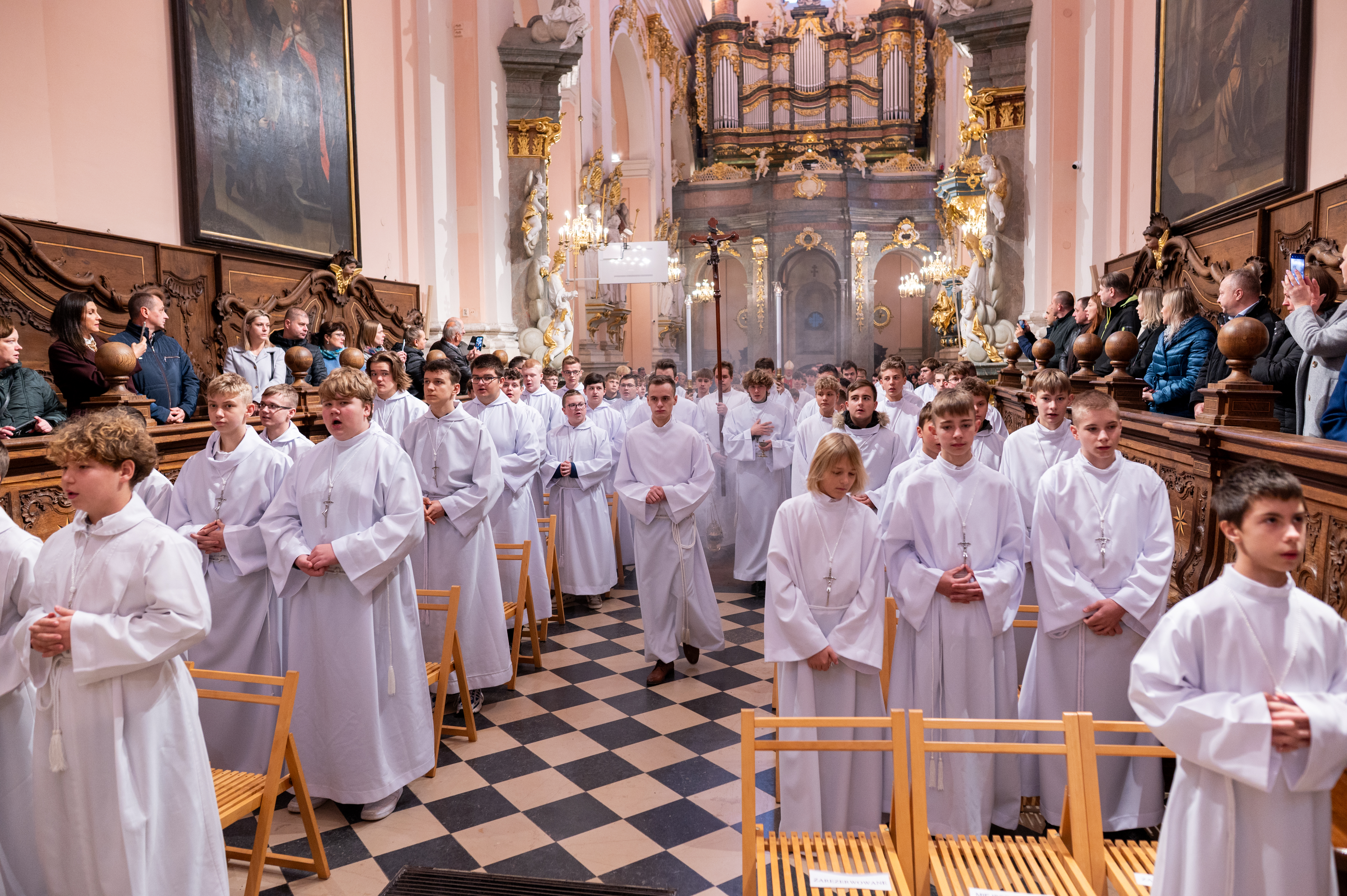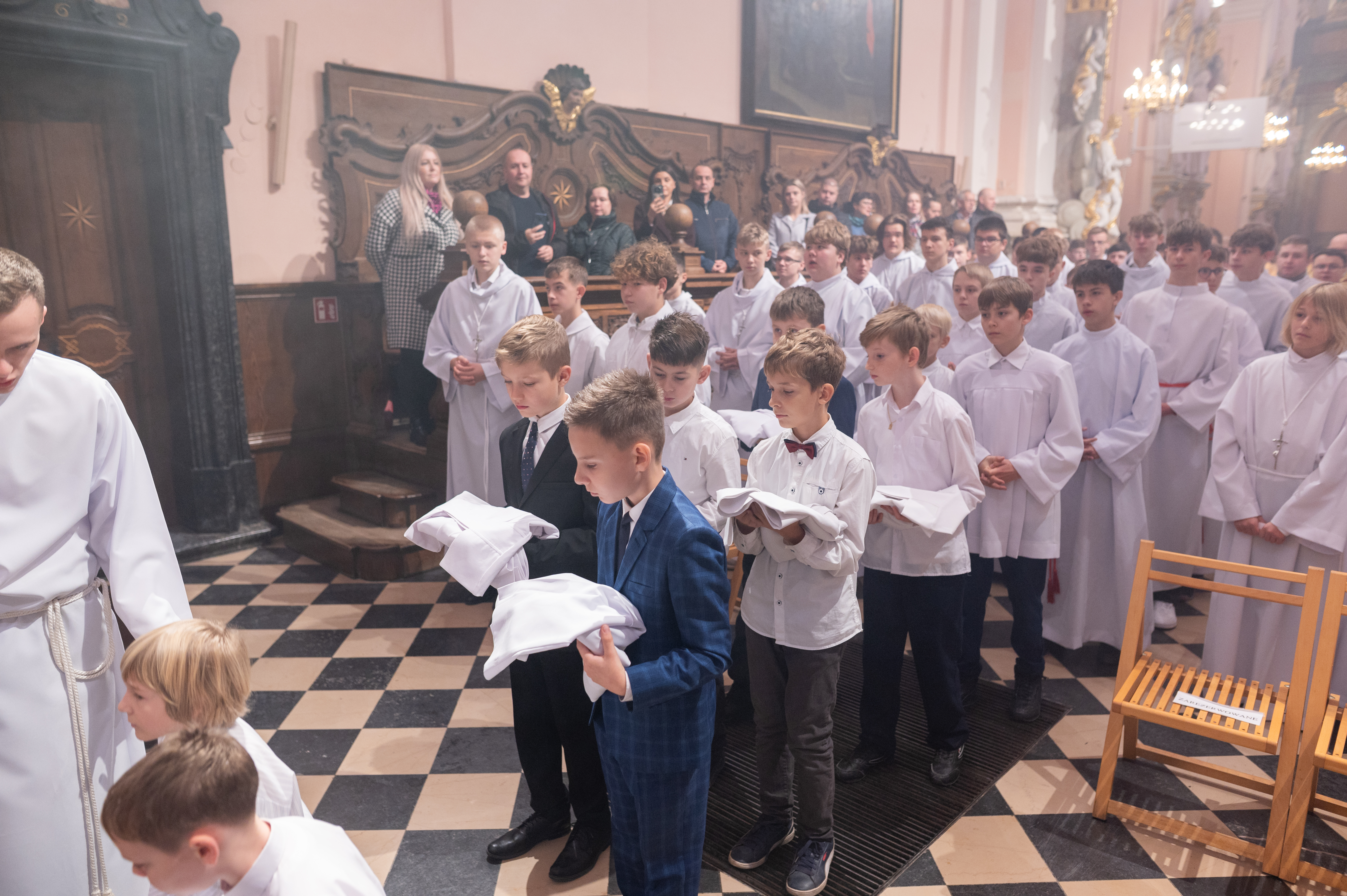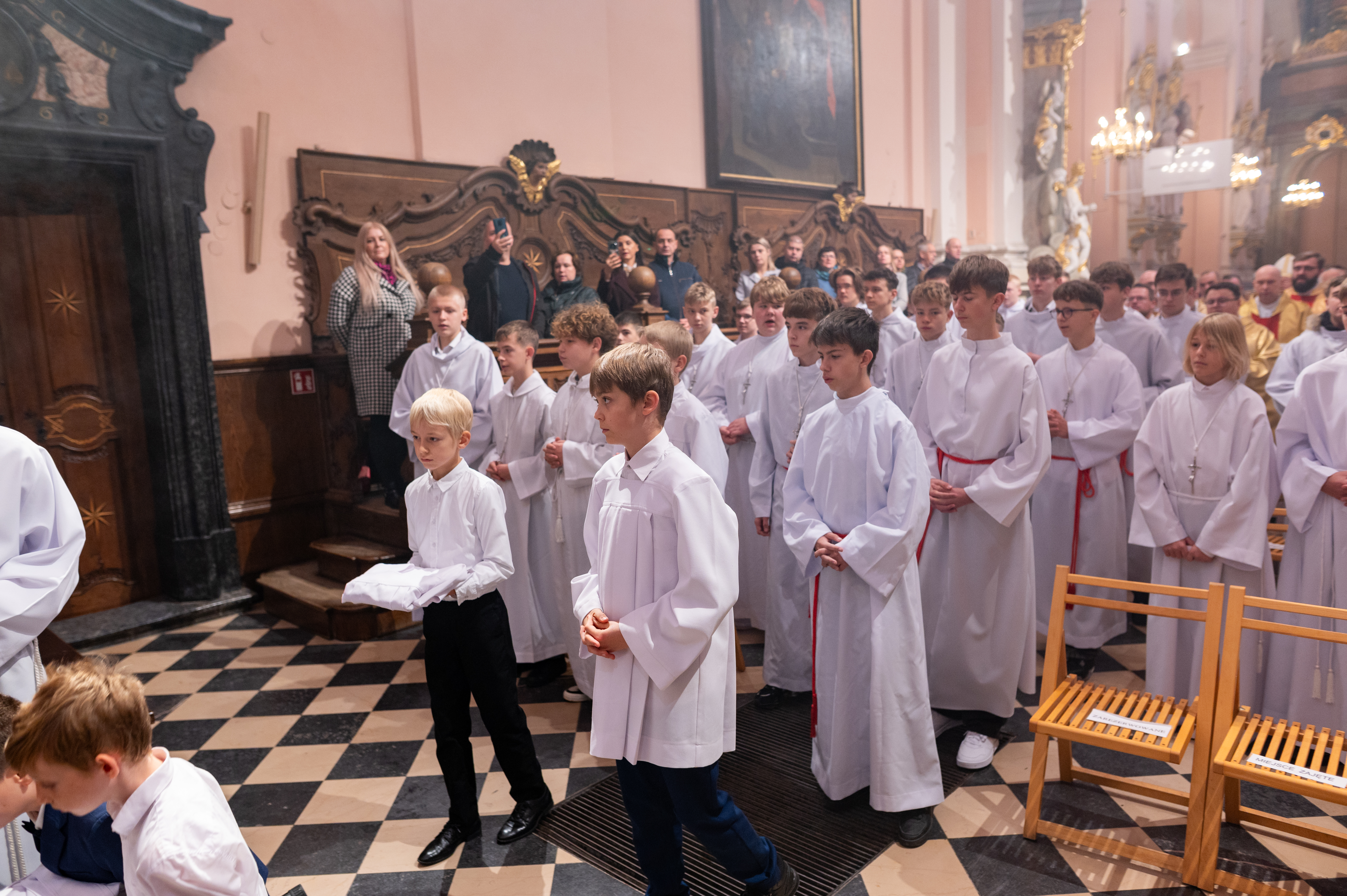 Jesienny kurs do pełnienia funkcji akolity ukończyło prawie 70 ministrantów z 18 parafii diecezji kieleckiej. W sobotę, 9 listopada wszyscy przybyli wraz z rodzinami oraz księżmi opiekunami do Bazyliki Grobu Bożego w Miechowie, gdzie podczas uroczystej Eucharystii błogosławieństwa do pełnienia funkcji akolity udzielił ksiądz biskup Andrzej Kaleta. Błogosławieństwo otrzymało również 3 ceremoniarzy oraz ustanowiono 7 nowych ministrantów, którzy zostali uroczyście przyjęci do służby w miechowskiej parafii.